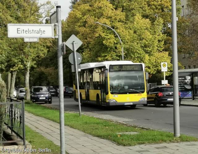 S-Bahn S5 über Bahnhof Zoo, Friedrichstraße, Alexanderplatz, Lichtenberg usw. Richtung Strausberg, Hoppegarten oder Mahlsdorf bis Biesdorf. Von dort 4 Stationen mit Bus 192 Richtung S-Bahnhof Marzahn bis zur Station Eitelstraße fahren (gegenüber dem REWE-Markt) .