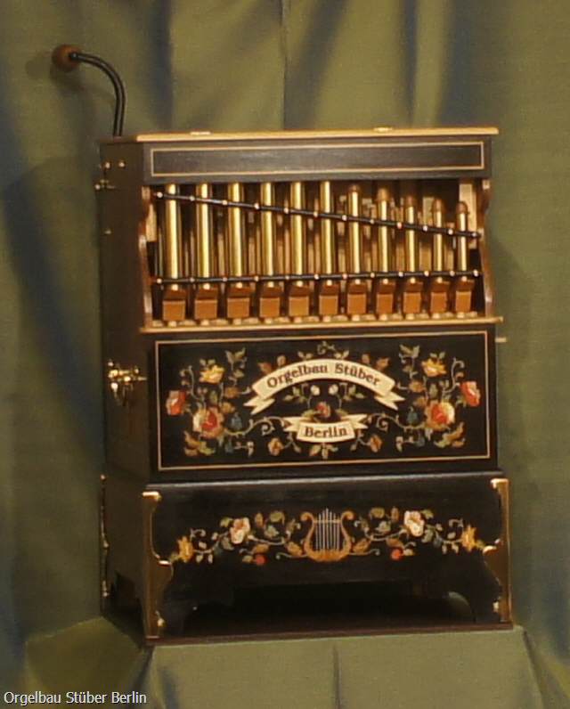 Diese Drehorgel braucht nicht 8 Register. Der Klang jeder einzelnen Pfeifen ist gefühlvoll intoniert. Das ist der Grund für die faszinierende Brillanz dieses Instruments.