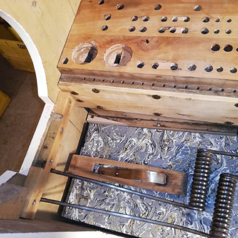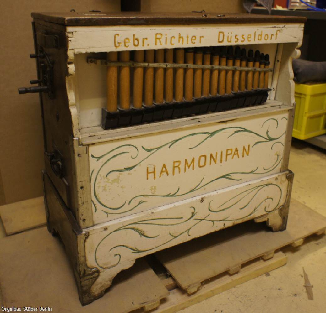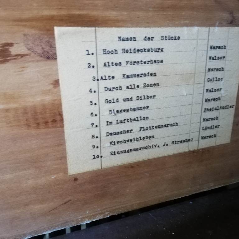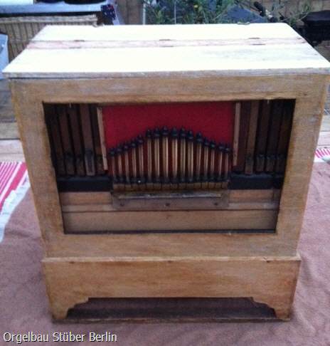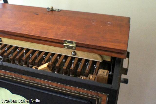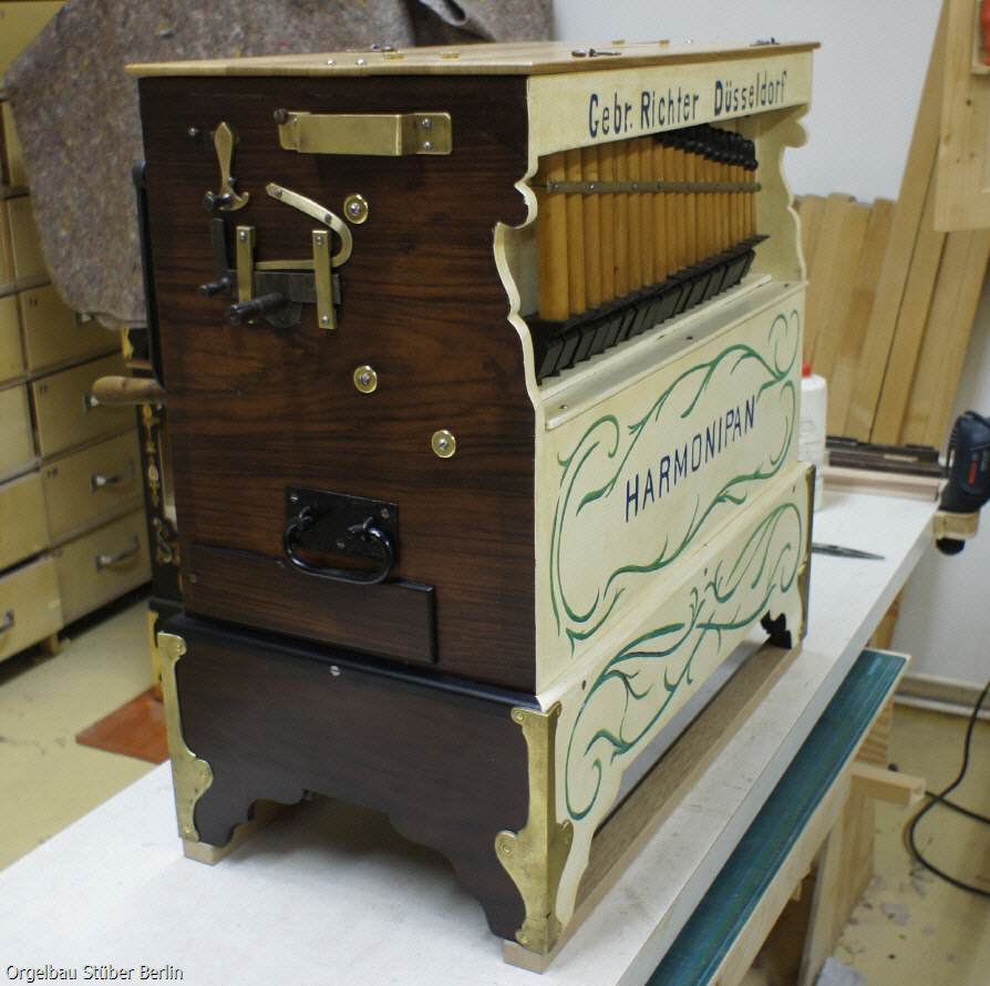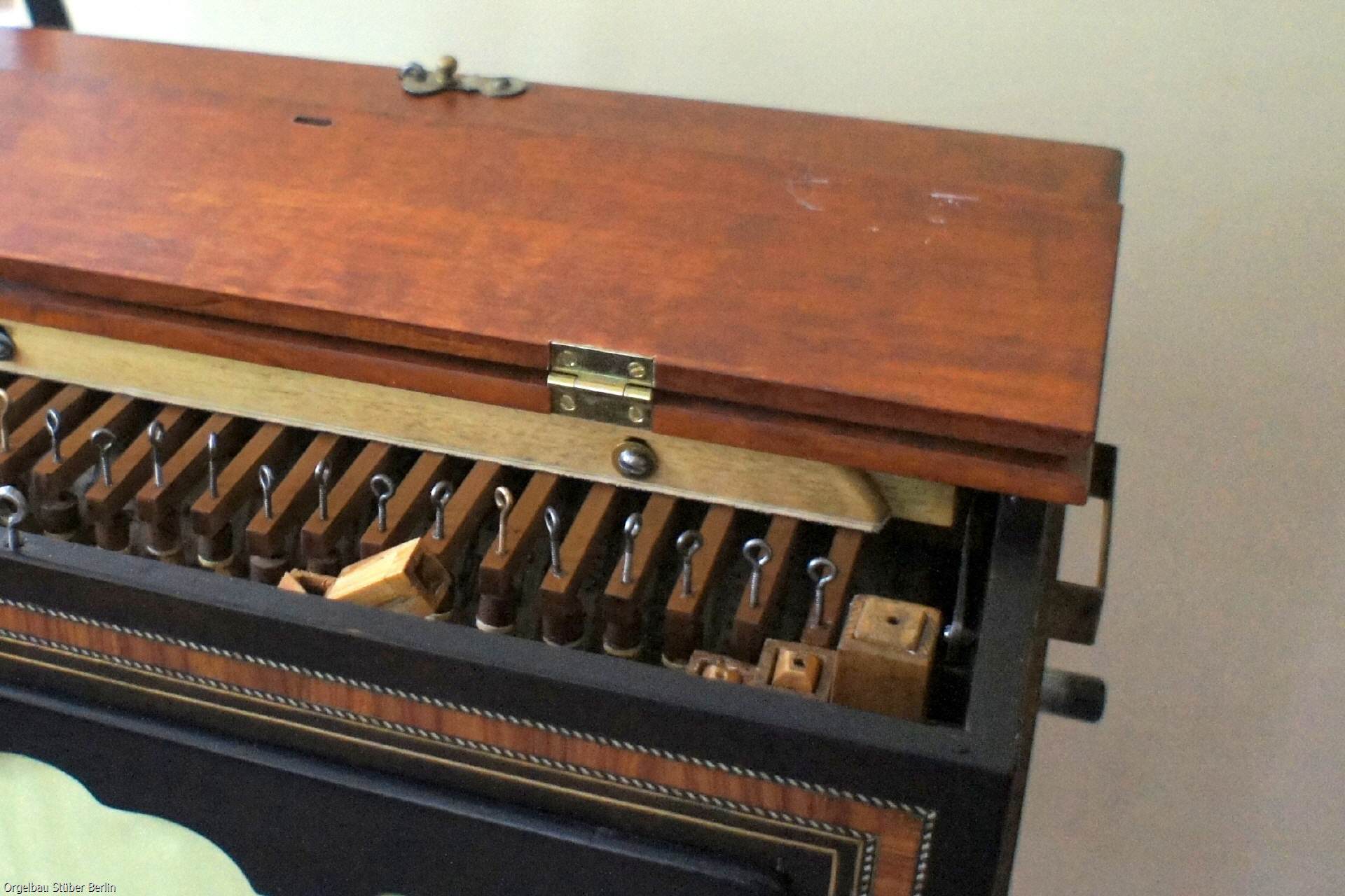 Diese Walzenorgel aus dem Jahr 1935 konnte trotz umfangreichem Holzwurmfraß und links herum gedrehter Walze gerettet werden.