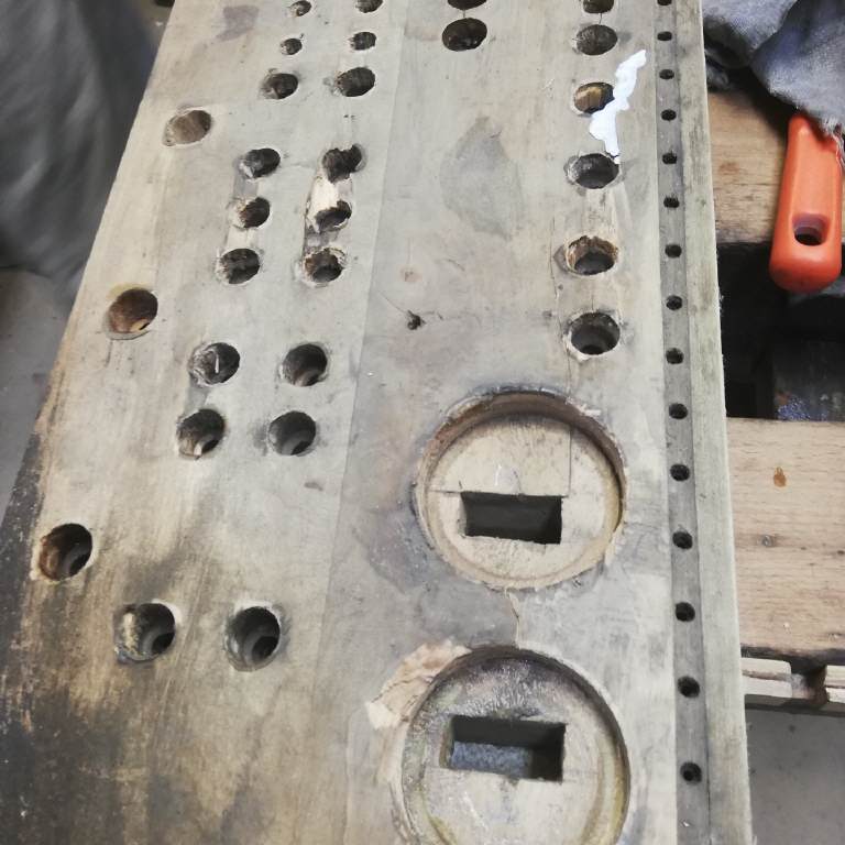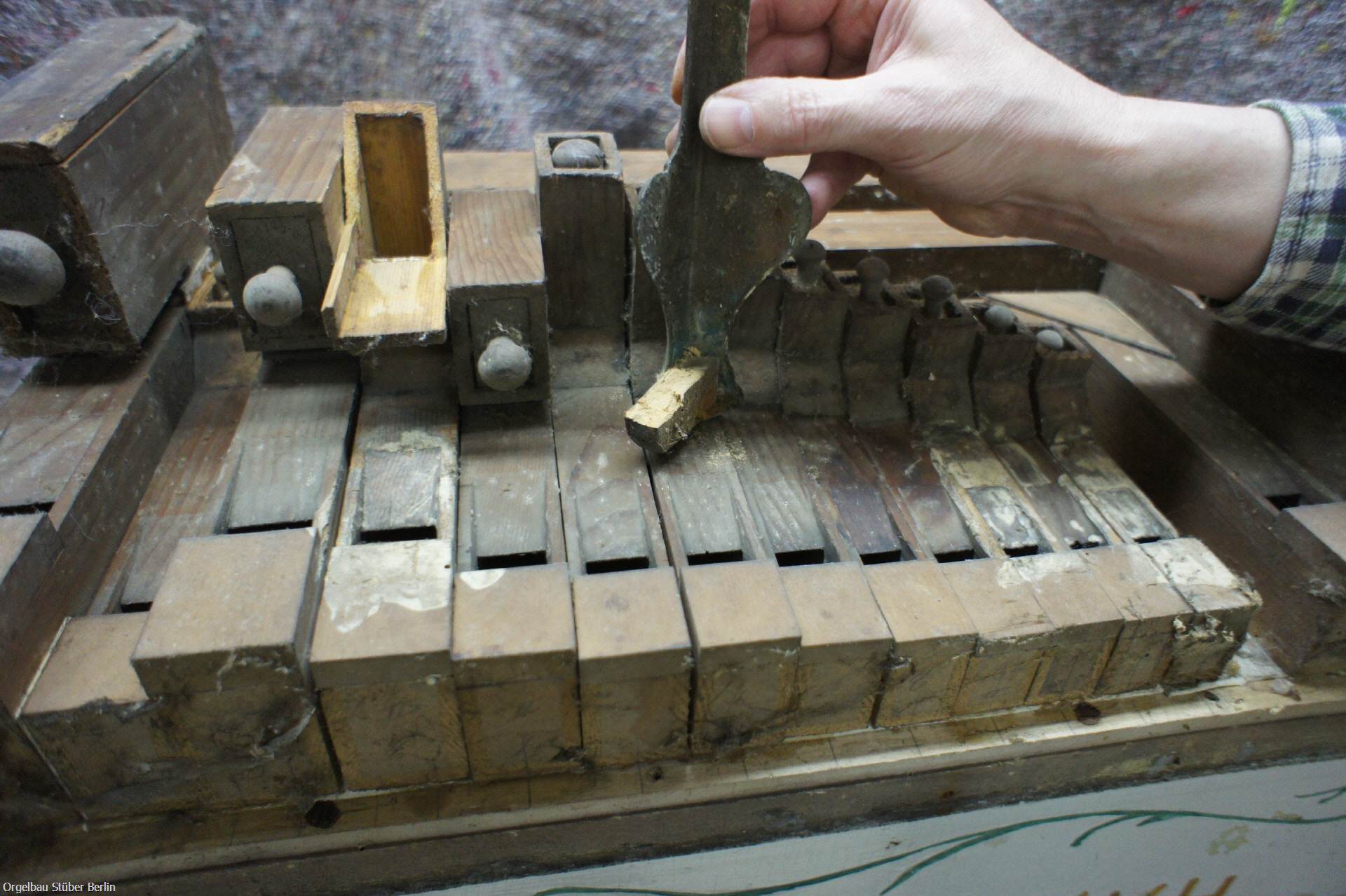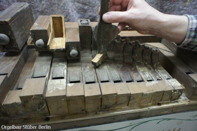 Schon ein wenig mit der Bearbeitung des Drehorgelfragmente hatte hier der Kunde begonnen.